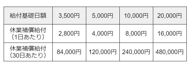 休業補償金は、以下の式で求められた金額を上限に、休業4日目以降から支給される仕組みです。
